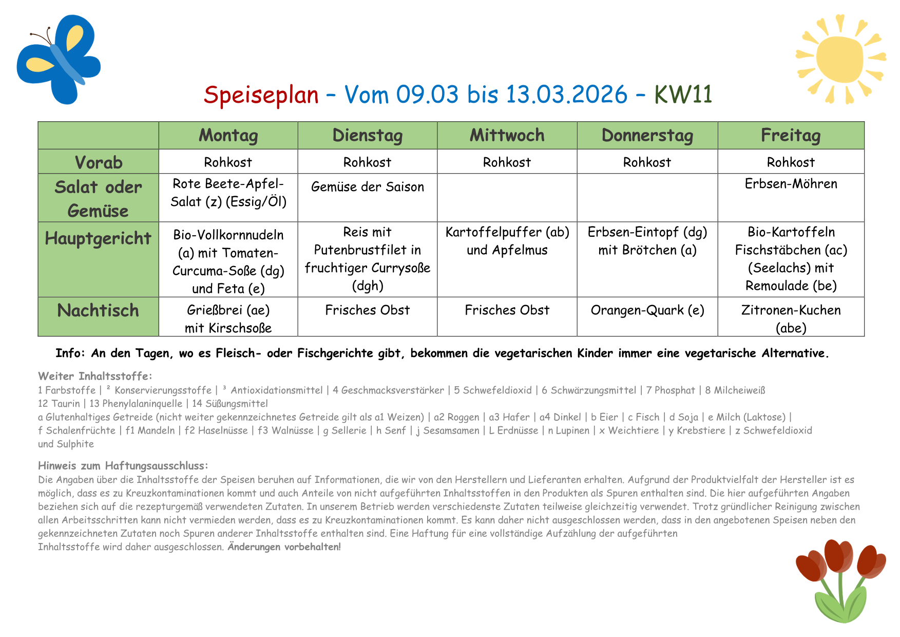 Speiseplan vom 09.03 - 13.03.2026 - 11 KW