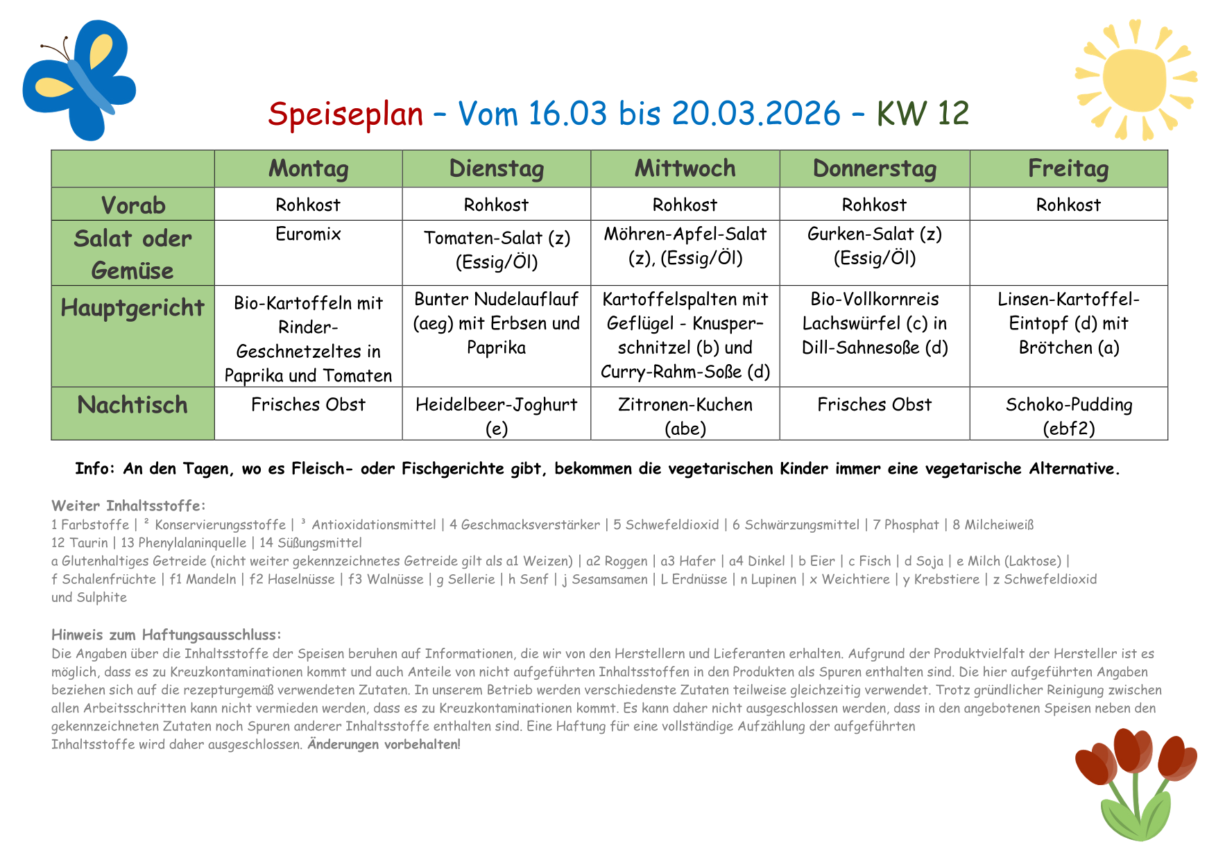 Speiseplan vom 16.03. - 20.03.2026 - 12 KW