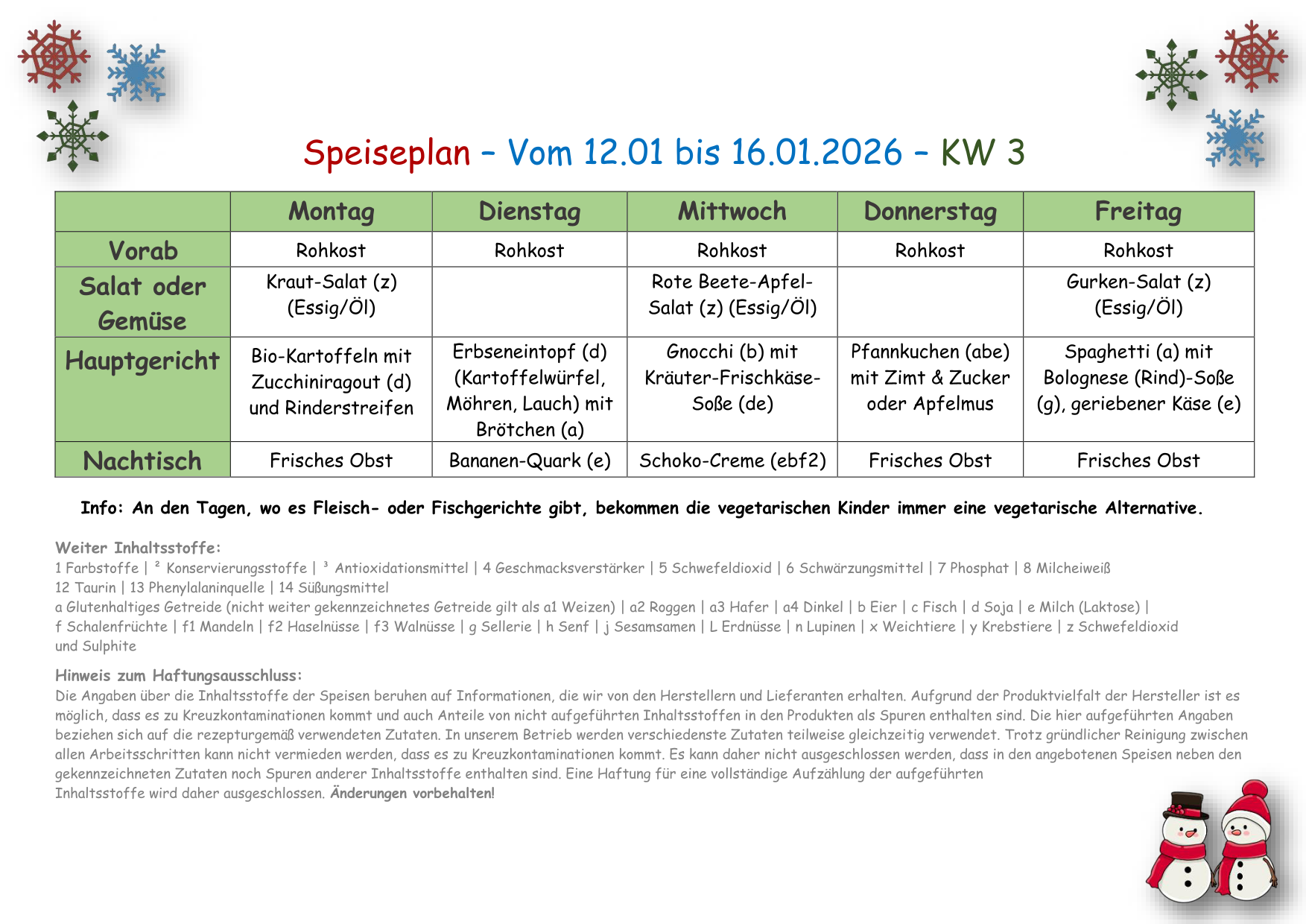 Speiseplan vom 12.01 - 16.01.2026 - 03 KW