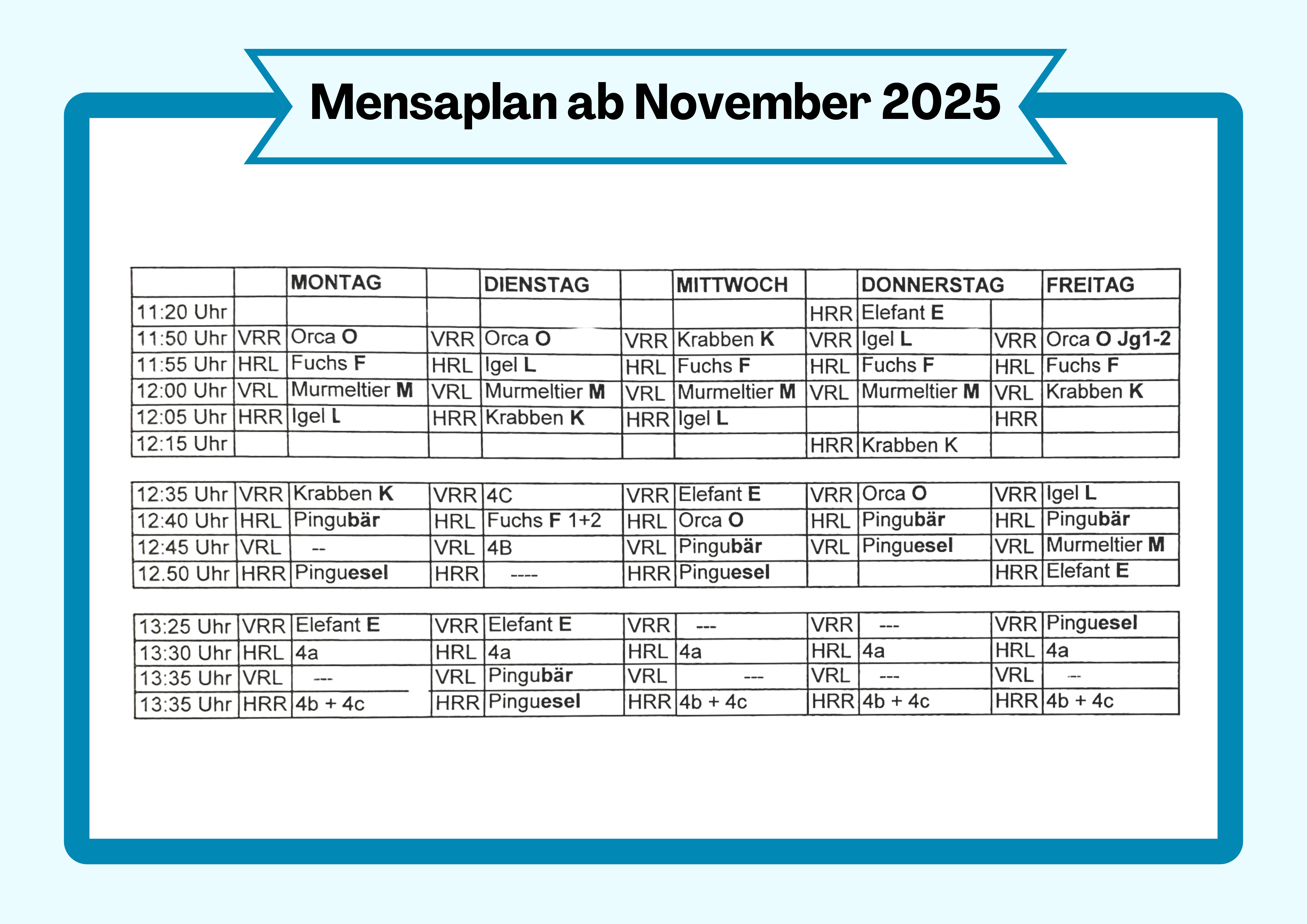 Übersicht zu den Essenszeiten ab November 2025 finden Sie HIER