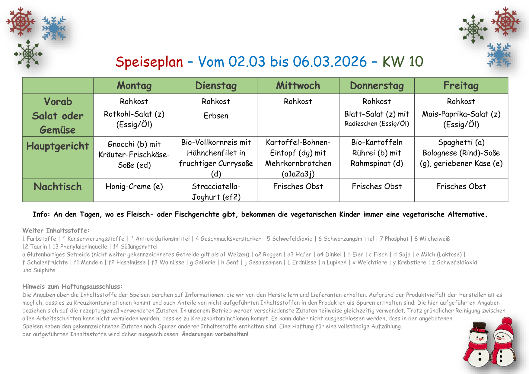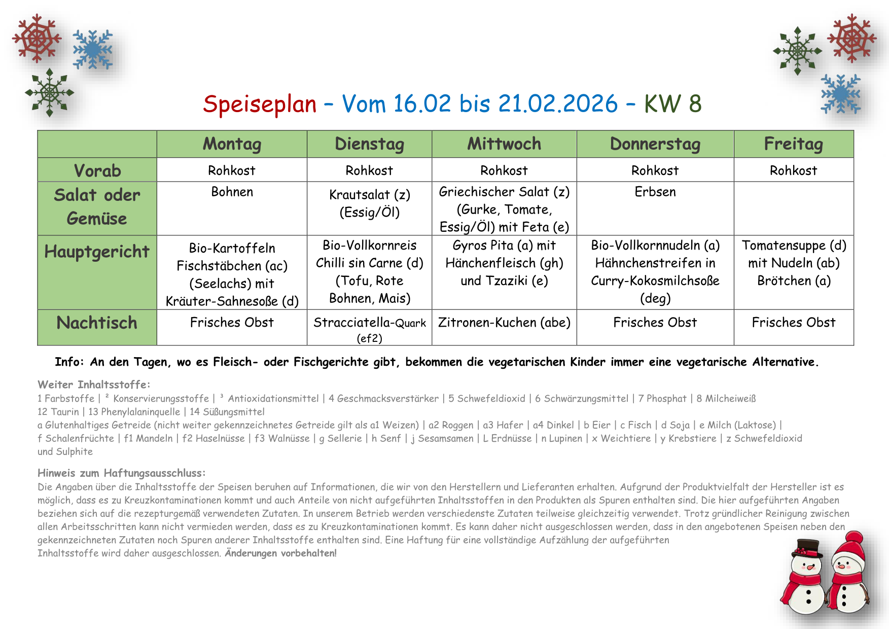 Speiseplan vom 16.02. -20.02.2026 - 08 KW