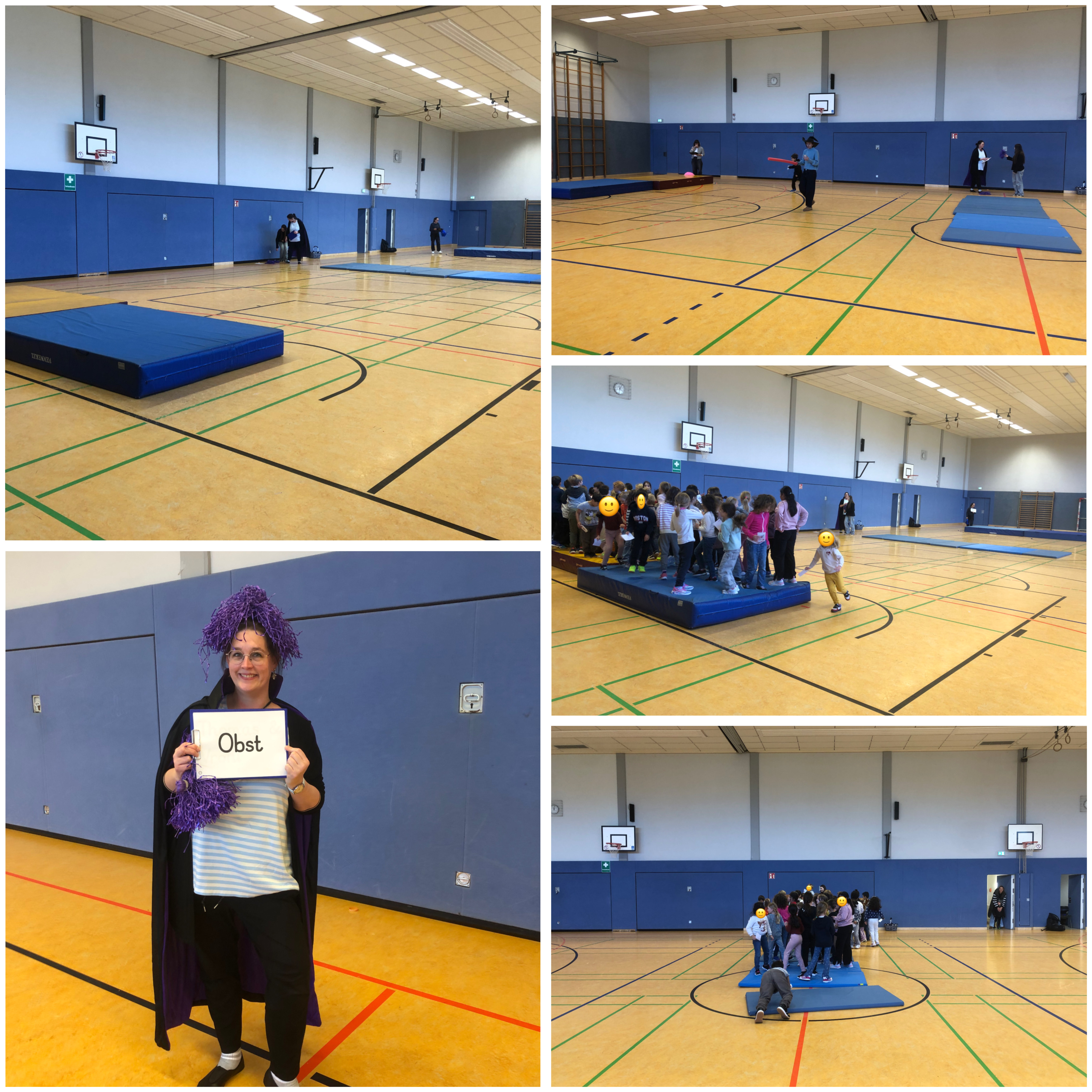 Die Kinder der Orca-, Krabben- und Pinguinklasse hatten eine Sportstunde der etwas anderen Art. Ganz im Stil der bekannten Kinder Quizshow für Kinder 1,2 oder 3 mussten die Schülerinnen und Schüler Fragen beantworten und sich für die richtige Lösung entscheiden. Die Fragen beschäftigten sich mit dem Buch, welches alle Klassen gelesen hatten, "Die kleine Hexe" von Otfried Preußler. Dabei wurde viel gelaufen, gelacht und nachgedacht. Die Kinder waren aber echte Experten die Geschichte betreffend und konnten alle Fragen richtig beantworten.