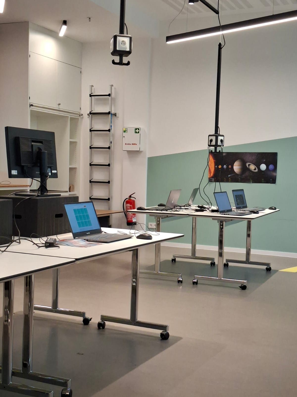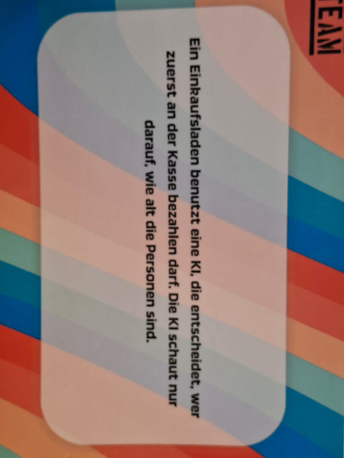 Dieses Jahr waren wir zum ersten Mal in der erst 2024 neu eröffneten Bielefelder Wissenswerkstatt zu Besuch. Die Kinder besuchten einen Workshop zum Thema "Training im KI-Gym". Hier ging es um die spannende Frage "Wo steckt überall KI drin und weiß sie wirklich alles?". Spielerisch und experimentell lernten die Kinder dieser Frage nachzugehen. An verschiedenen Stationen konnten sie ausprobieren was KI alles kann. Sie mussten erkennen ob ein Foto echt ist oder KI generiert. Es wurde am PC gezeichnet und die KI erkannte, was man darstellen wollte. Außerdem wurde mit KI eine Geschichte geschrieben. Dazu gabe es spannende Diskussionsfragen (siehe Foto).